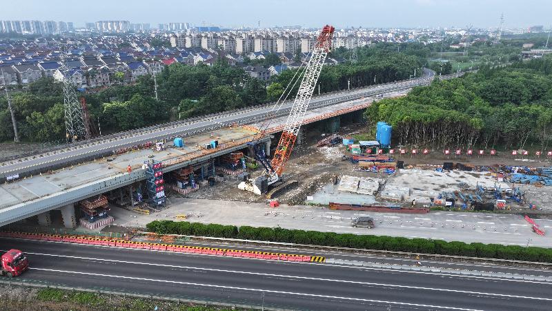 目前,滬武高速改擴建太倉境內(nèi)各標(biāo)段施工有序推進。圖為...
